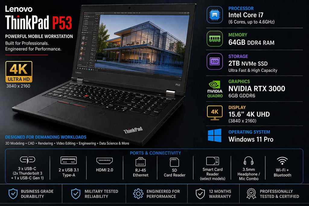 Lenovo ThinkPad P53 i7 64GB RAM 2TB SSD RTX 3000 6GB 15.6" 4K Win 11 Pro